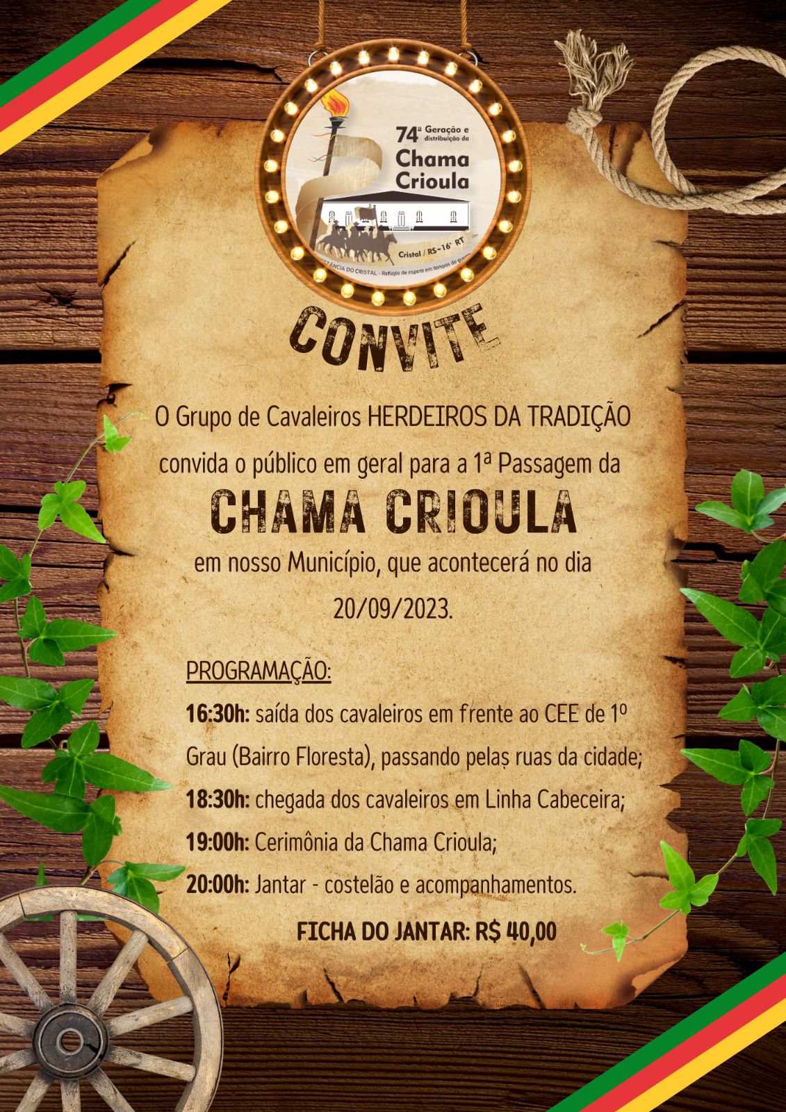 1° CHAMA CRIOULA EM PRES. CASTELLO BRANCO 20/09/2023
