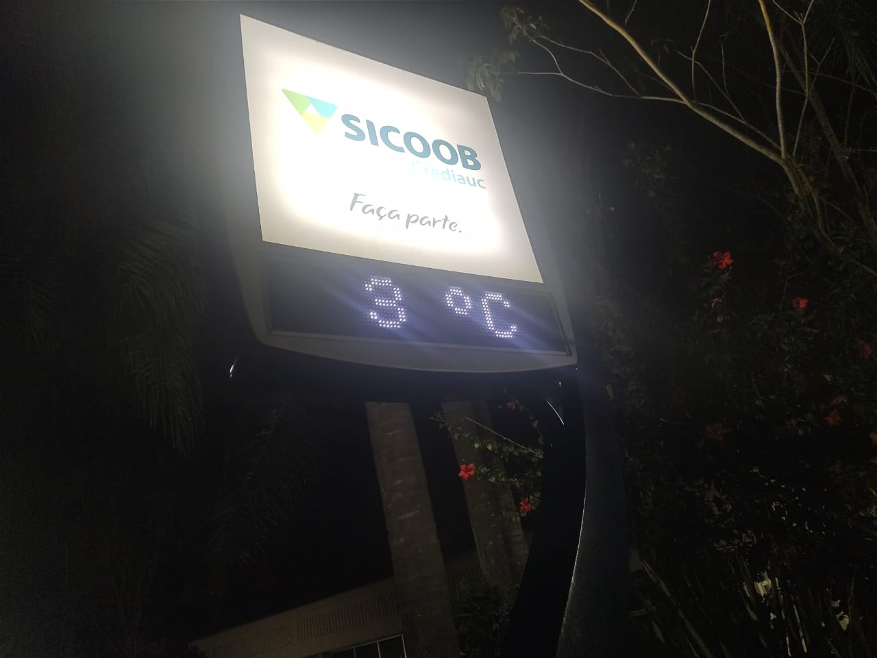 Temperaturas mais frias foram registradas nessa sexta feira em Pres. Castello Branco chegando a 3º graus no centro da Cidade.