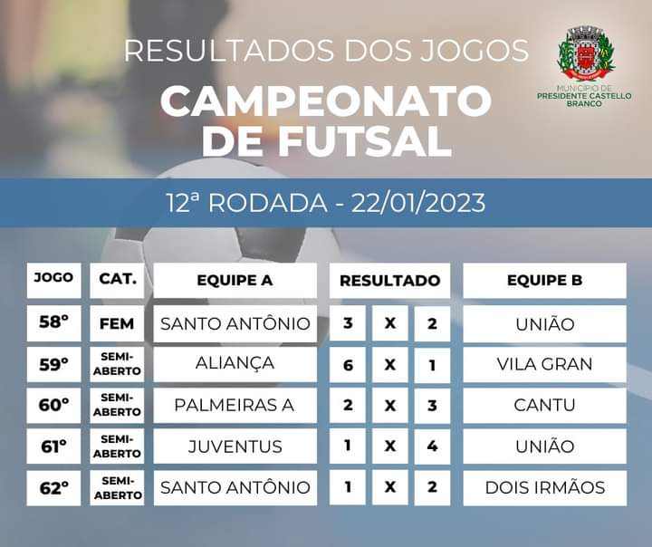 Resultados dos Jogos - Campeonato de Futsal.