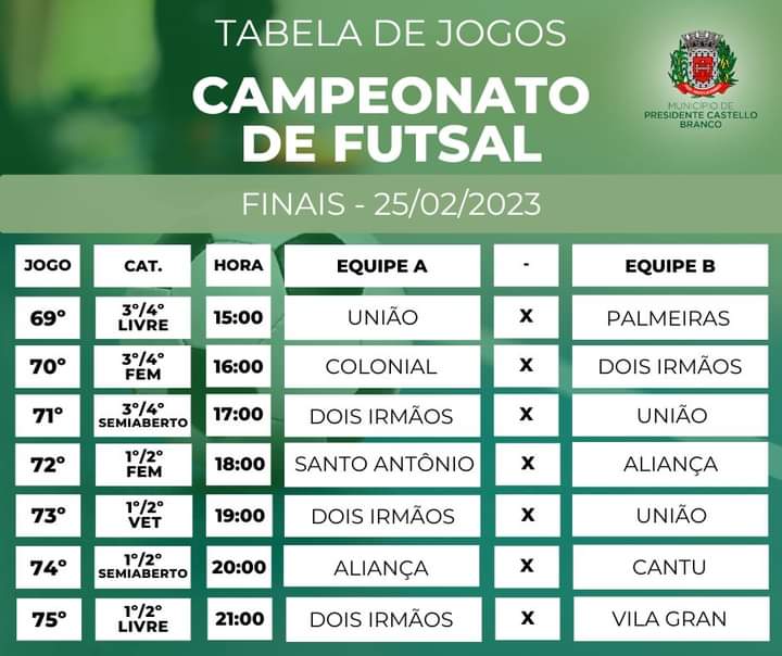 Tabela dos jogos da Final do Campeonato de Futsal ⚽️
