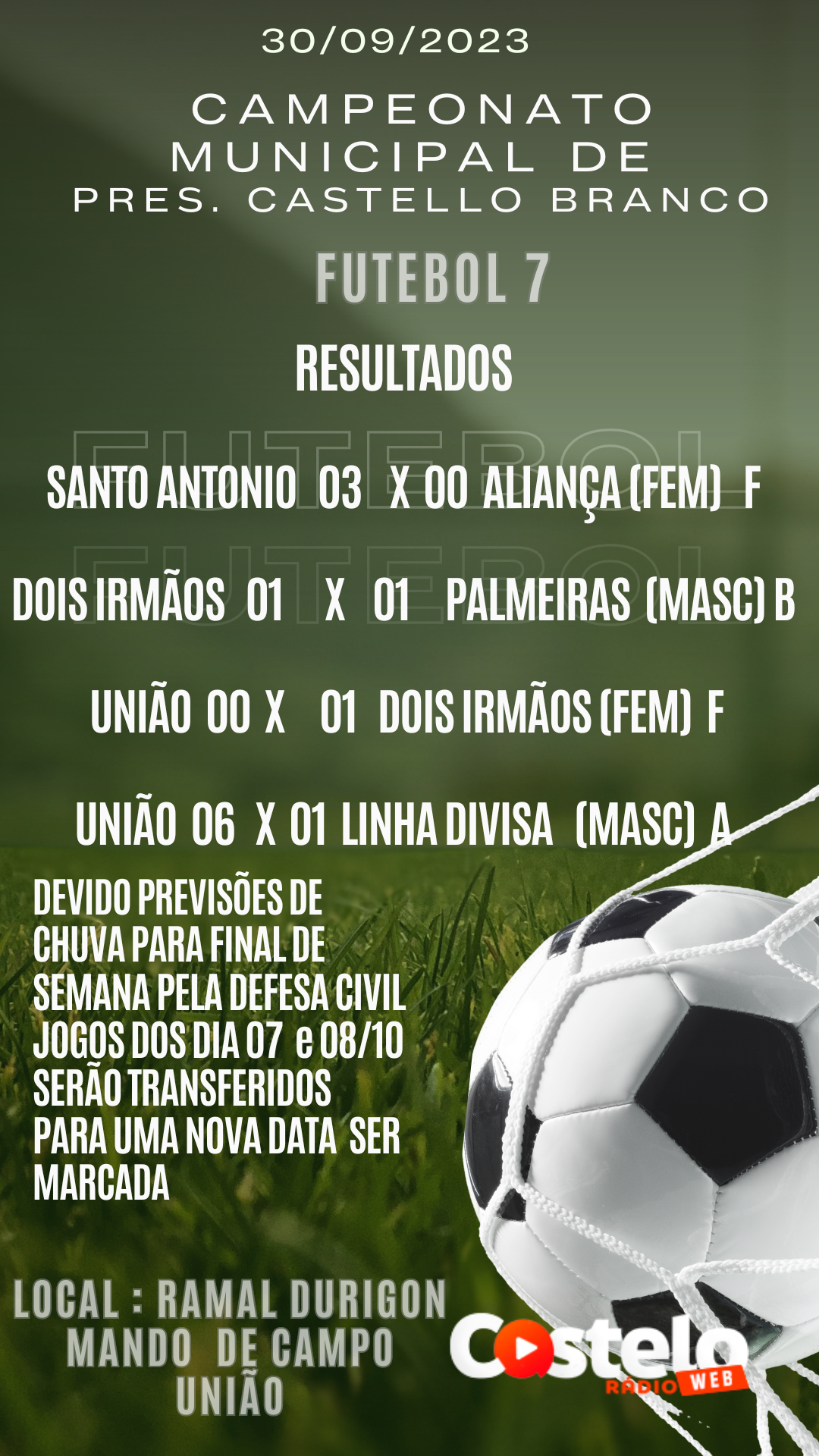 RESULTADOS CAMPEONATO MUNICIPAL FUTEBOL 7 (30/09/23)