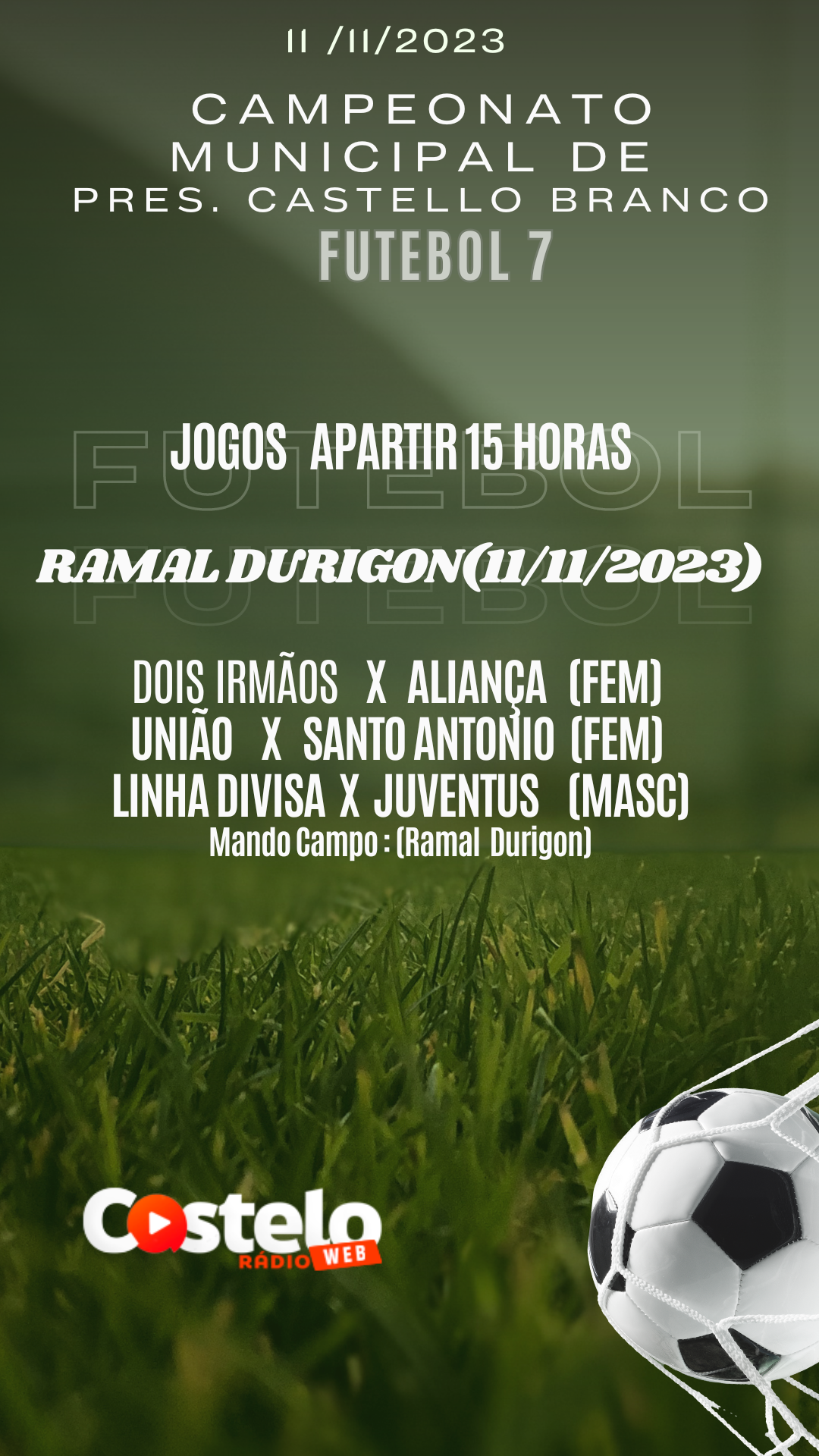 CAMPEONATO MUNICIPAL FUTEBOL SETE JOGOS DIAS 11 E 18 DE NOVEMBRO 2023