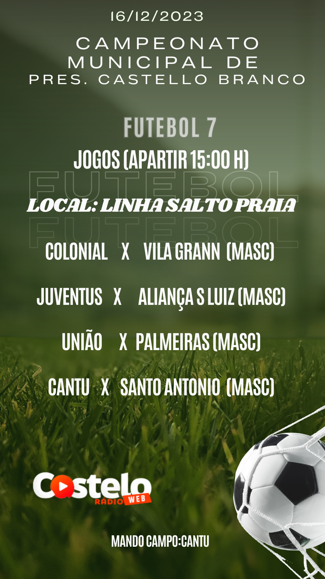 CAMPEONATO MUNICIPAL FUTEBOL SETE JOGOS DIA 16/12
