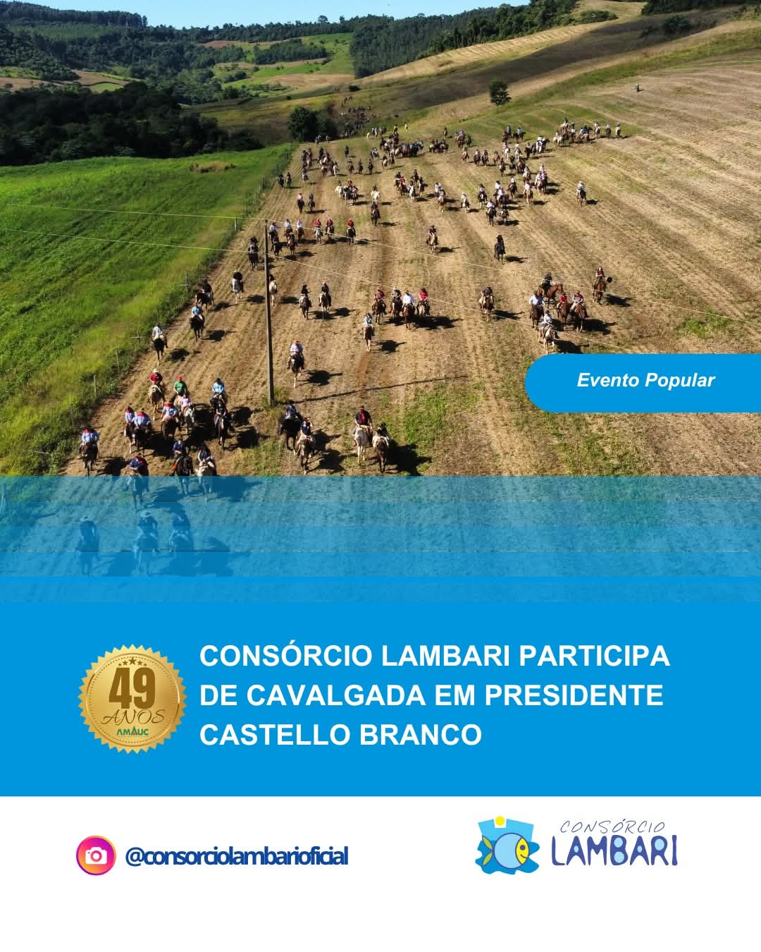 O CONSÓRCIO LAMBARI participou no fim de de semana da 16ª Cavalgada, em Presidente Castello Branco. O evento, promovido pelo Centro de Tradições Gaúchas, Herdeiros da Tradição, na comunidade de Linha Taquaral.