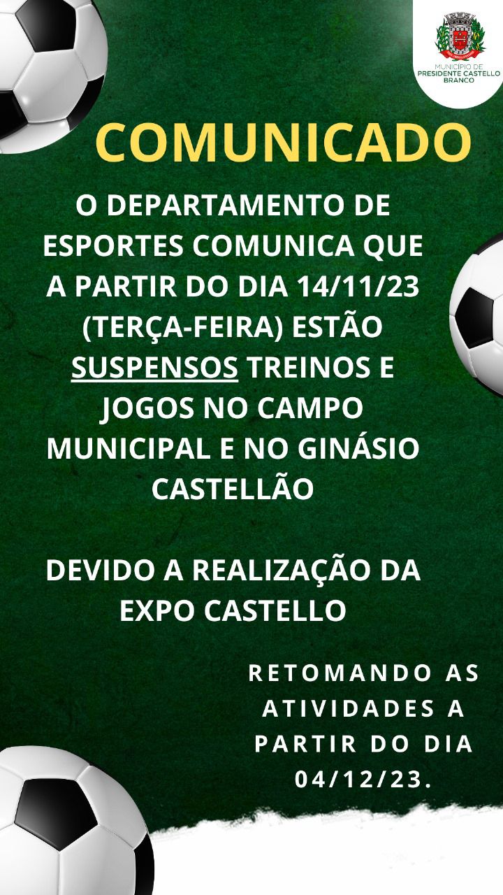 SUSPENSOS JOGOS E TREINOS NO GINASIO E CAMPO MUNICIPAL APARTIR 14/11 ...